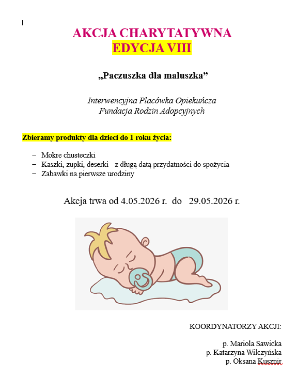 Akcja charytatywna- PACZUSZKA DLA MALUSZKA