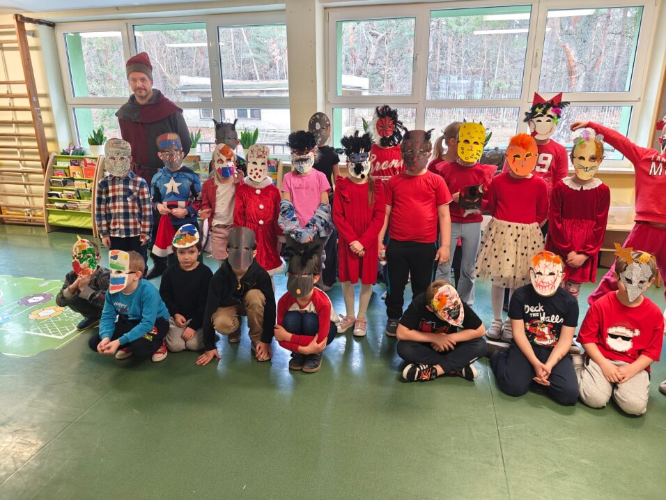 Klasy 1–3 brały udział w warsztatach poświęconych ludowym tradycjom bożonarodzeniowym. Uczniowie dowiedzieli się, co jest cennym elementem polskiego folkloru, odzwierciedlającym dawne wierzenia i obrzędy, które łączą elementy magii, teatru i życzeń pomyślności. Na zakończenie warsztatów wykonali maski kolędnicze służące do odgrywania ludowych jasełek.