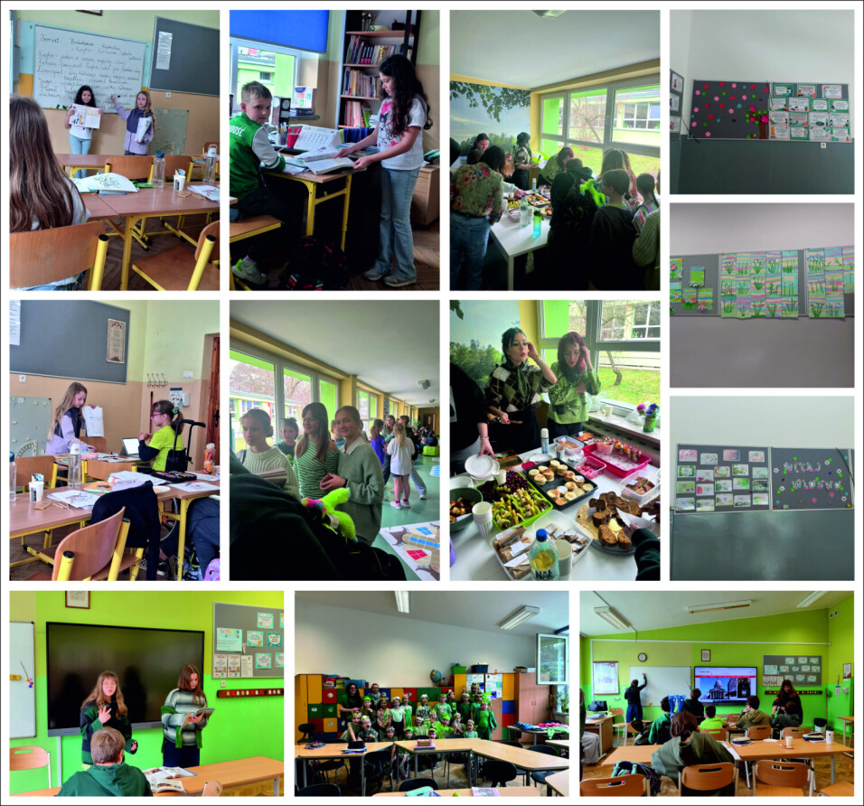 W tym roku szkolnym Samorząd Uczniowski z okazji Pierwszego Dnia Wiosny zorganizował kawiarenkę ze zdrowymi przekąskami, konkurs na najbardziej wiosenną salę lekcyjną. Uczniowie przybyli tego dnia w barwach zieleni. Niektóre lekcje wyglądały inaczej, a to z tego powodu, iż były prowadzone przez uczniów 😊